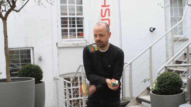 Generationen kennen den Zauberwürfel. Man hasst ihn oder man liebt ihn. Fest steht: Dieser Jongleur gehört zu den Liebhabern. Sein Kunststück dauert 20 Sekunden.