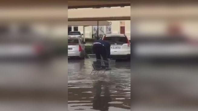 Abu Dhabi überflutet: Mann verzweifelt im Einkaufswagen