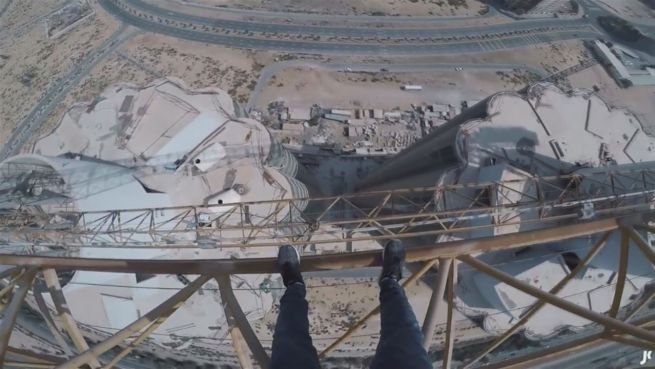 Adrenalin-Junkie: Riskante Kletterei von Kran zu Kran