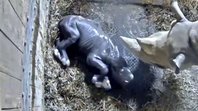 Auf die Beine und los: Geburt eines schwarzen Nashorns
