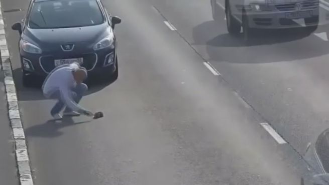Kätzchen im Glück: ein Wollknäuel hat sich im russischen Kaliningrad ausgerechnet auf eine Autobahn gelegt. Dutzende Wagen rasen haarscharf an ihr vorbei. Bis ein Retter sich erbarmt.