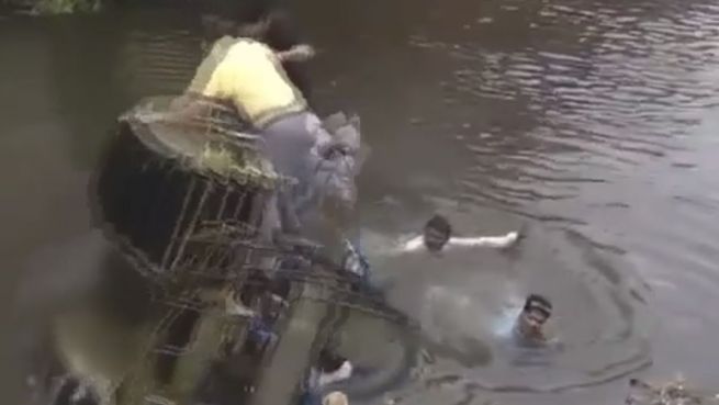 Die Vorstellung seines neuen Aufräumbootes für verdreckte Flussufer dürfte sich dieser Bürgermeister wohl anders vorgestellt haben. Statt einer triumphalen Präsentation des Fortschritts fällt die Aktion buchstäblich ins Wasser.