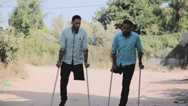 Adli und Mansour teilen sich ein Paar Schuhe. Die beiden Männer verbindet nämlich nicht nur eine tiefe Freundschaft, sondern auch ein trauriges Schicksal. Beide haben bei Bombenangriffen in Gaza ein Bein verloren.