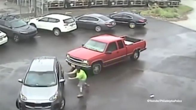 In Philadelphia attackierte ein Mann zuerst ein Auto und dann den Beifahrer mit einem Vorschlaghammer. Die Polizei ist auf der Suche nach Opfern und Täter und bittet um Mithilfe.