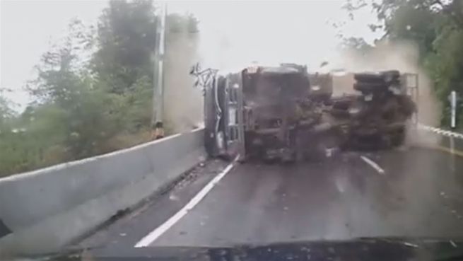 Auf einer Landstraße in Thailand kollidiert ein Motorradfahrer mit einem Lkw. Der Lastwagen schleift den jungen Mann noch einige Meter mit sich. Doch wie durch ein Wunder überlebt der Biker diesen brutalen Crash leicht verletzt.