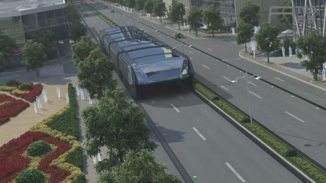 China ist berüchtigt für seinen höllischen Verkehr. Diese Erfindung könnte nun Abhilfe schaffen - ein riesiger Bus, der einfach über den regulären Verkehr hinweg fährt.
