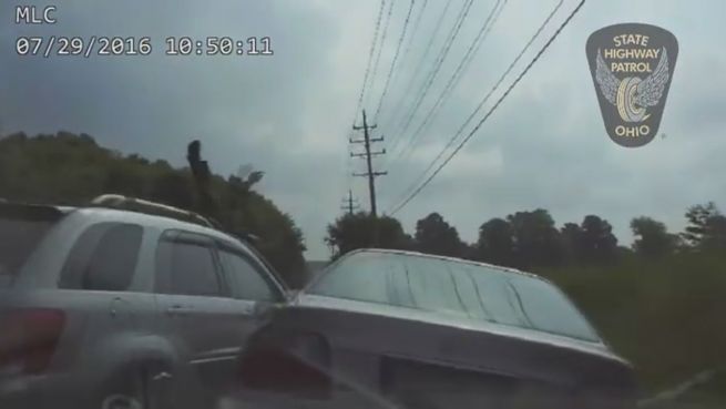 Im US-Bundesstaat Ohio kam es Ende Juli zu diesem heftigen Crash, den jetzt die Verkehrspolizei publik macht. Ein Autofahrer steuerte sein Fahrzeug beim Überholen mitten in eine Verkehrskontrolle.