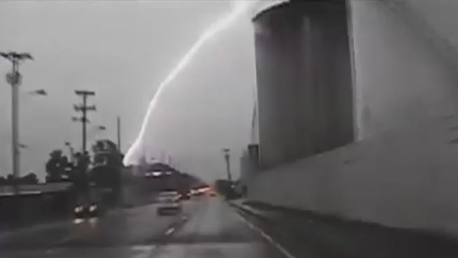 Zwei Polizisten in Kentucky wurden Zeuge eines Blitzeinschlags. Der eine filmte das Naturschauspiel mit seiner Dashcam von weitem, der andere war ganz nah dran. Er wurde von dem Schlag erwischt.