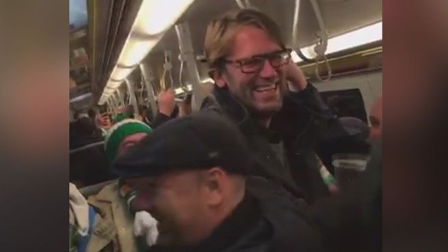 Eine schöne Gesangsparty ereignete sich in einer Metro auf dem Weg zum Länderspiel zwischen Österreich und Irland. Fans besingen einen Fahrgast, der verblüffende Ähnlichkeit mit Star-Trainer Jürgen Klopp hat.