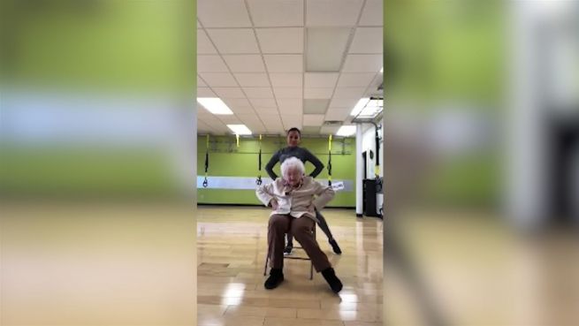 Diese 93-jährige Dame aus South Dakota hat es faustdick hinter den Ohren. Zusammen mit ihrer Trainerin Elizabeth geht es sportlich zur Sache - dabei darf der Spaß natürlich nicht zu kurz kommen.