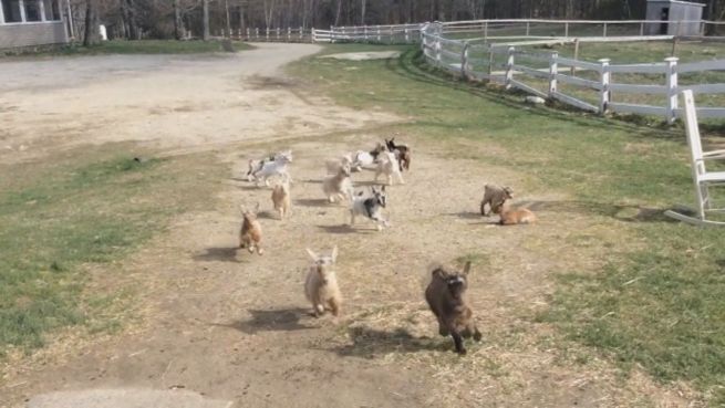 Erst vor rund zwei Wochen wurden auf der 'Sunflower Creamery Farm' im US-Bundesstatt Maryland 27 Zicklein geboren. Von den ersten Sonnenstrahlen sind die Jungtiere völlig fasziniert. Sie erkunden den Hof und strotzen nur so vor Lebensfreude.