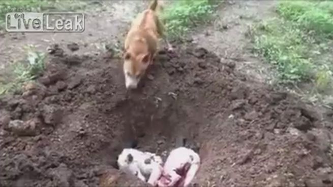 Fast schon menschlich: Hund begräbt seinen Artgenossen