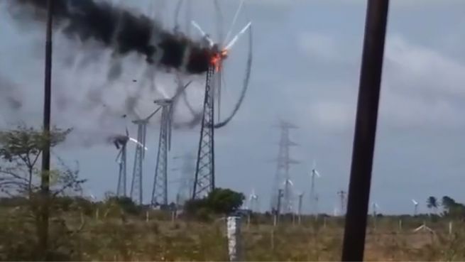 Feurig schöne Spirale: Windrad gerät in Brand