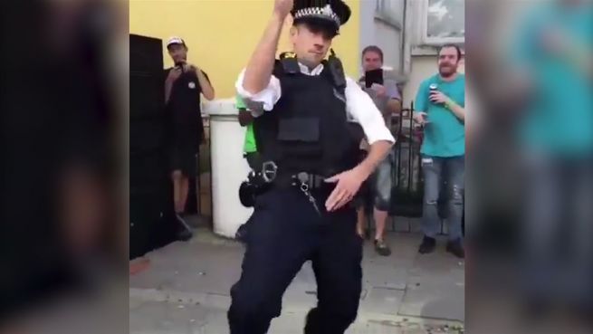 Ein Straßenfest muss für Polizisten keine Belastung sein. Beim Notting-Hill-Karneval in London nutzte ein Cop die Gelegenheit, um mal seine Breakdance-Künste zu präsentieren.
