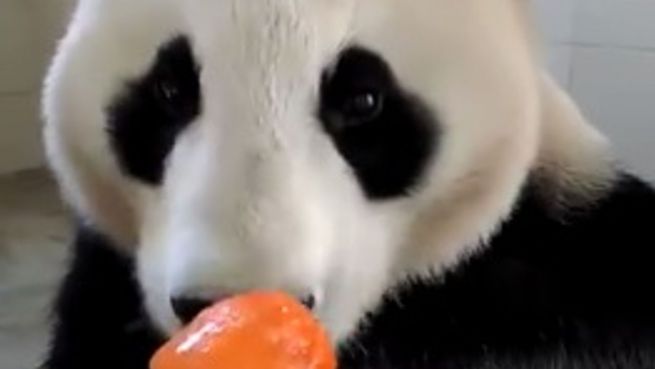 Gaumenschmaus: Panda lässt sich Eis am Stiel schmecken