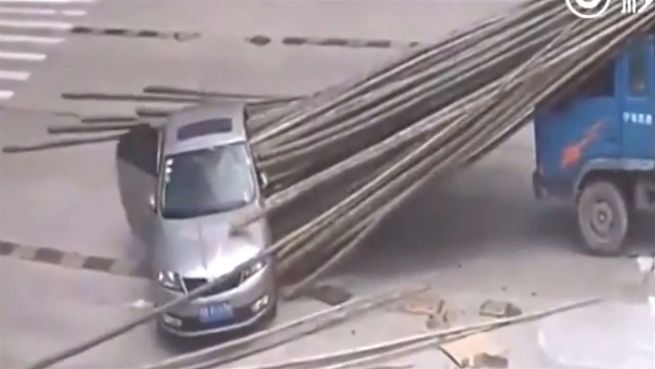 Glück im Unglück: Bambusstämme spießen Auto auf
