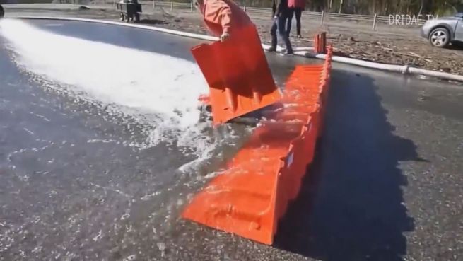 Ein schwedisches Unternehmen hat 'orange Helfer' entwickelt, die Überschwemmungen aufhalten. Sie sind eine leichte Alternative zu schweren Sandsäcken und können innerhalb weniger Minuten wie ein Puzzle zusammengebaut werden.