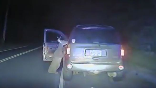 Als ein Polizist Mitte September in News Jersey zu einem Verkehrsunfall mit einem Wildtier fährt, zeichnet die Dashcam seines Autos eine verstörende Szene auf. Ein Hirsch greift darin das am Straßenrand stehende Auto an.