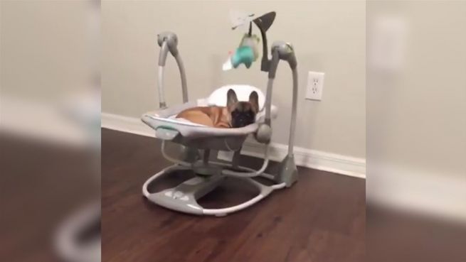 Was für Babys gut ist, kann für kleine Hunde nicht schlecht sein. Das denkt sich scheinbar auch diese kleine französische Bulldogge aus Tampa, Florida.