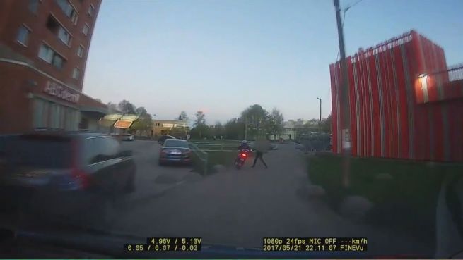 In der estnischen Hauptstadt Tallinn kam es zu einer Verfolgungsjagd zwischen der Polizei und einem mutmaßlichen Dieb. Doch nicht die Beamten, sondern eine mutige Fußgängerin mit Handtasche konnte den flüchtigen Motorradfahrer stoppen.