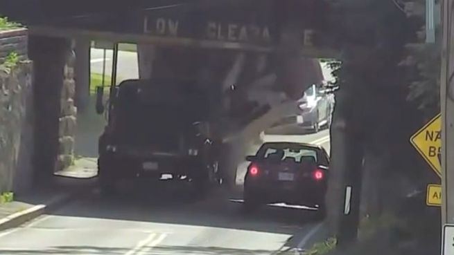 Westwood in Massachusetts hat eine zerstörerische Attraktion. Eine Eisenbahnbrücke, die traditionell für Unfälle sorgt. Meist werden höhere Fahrzeuge hier einfach abrasiert.