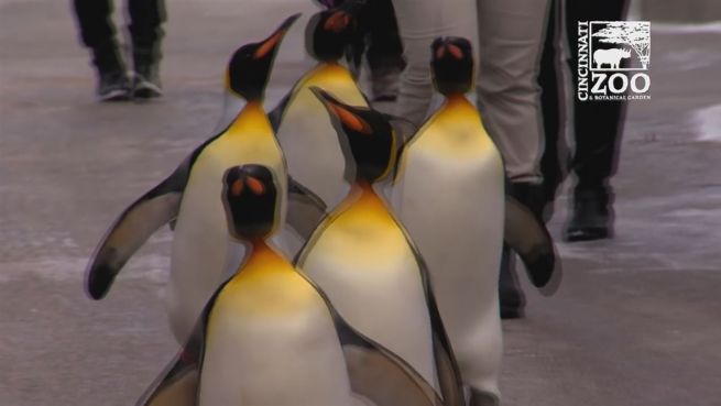 Im Zoo von Cincinnati ist die schönste Jahreszeit angebrochen: die der Pinguin-Paraden. Fünf Königspinguine watscheln gemeinsam mit den Zoogästen durch den Zoo.