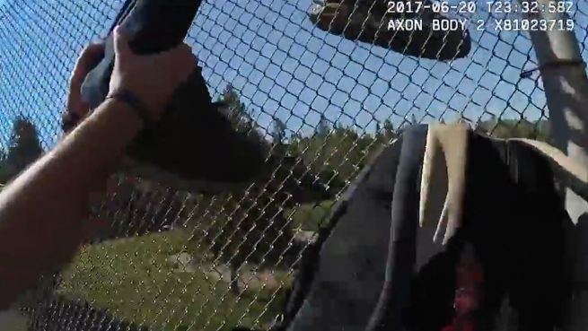 Eine US-Polizeistreife im kalifornischen Grass Valley schützt einen jungen Mann vor einer großen Dummheit. Hätten die Beamten hier nicht so beherzt eingegriffen, wäre es wohl zu einem Unglück für ihn und andere Verkehrsteilnehmer gekommen.