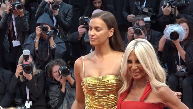 Zusammen mit Donatella Versace zog das russische Model in Venedig alle Blicke auf sich. Outfit und Begleitung von Versace - kaum zu überbieten.