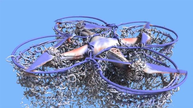 Es ist ein hypnotischer Anblick. Wissenschaftler der NASA zeigen an Hand einer Computersimulation, wie sich die Luft um eine fliegende Drohne bewegt und verändert.