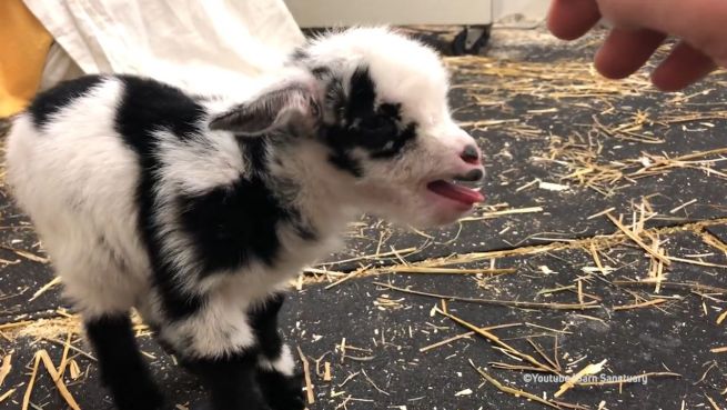 Okay, das Tierbaby süß sind ist nichts neues - aber diese Mini-Ziege macht auch noch echt drollige Geräusche. Kaum auf den Beinen fordert sie lautstark Schmuseeinheiten.