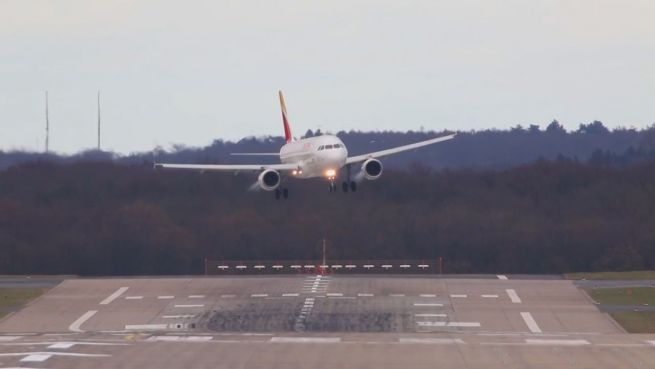 Am Ostermontag machte Sturm 'Katie' den Landeanflug in Düsseldorf zu einer haarigen Angelegenheit. Seitenwinde von bis zu 100 km/h schüttelten die Flugzeuge ordentlich durch.