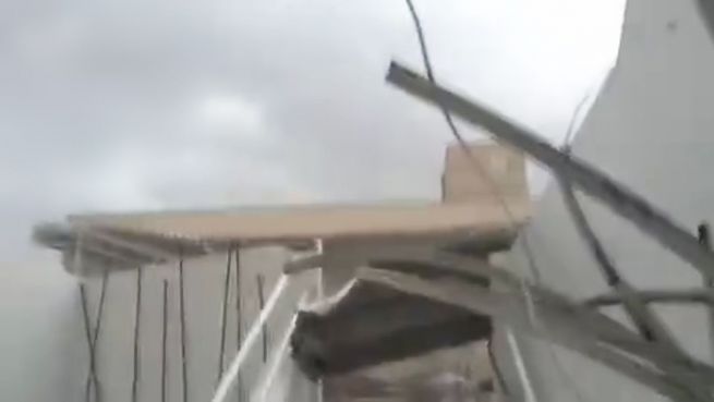 Der Bewohner hat es offenbar schon geahnt und das Ganze gefilmt: Ein Unwetter reißt ihm das Dach vom Haus. Gegen diesen Sturm hatte das Plexiglas-Konstrukt keine Chance.