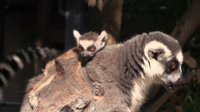 Das Katta-Baby Dalia lässt es sich gut gehen. Im Zoo von Phildelphia geht es überall mit dem 'Mama-Taxi' hin. Noch ist der kleine Lemur nämlich nicht alleine unterwegs.