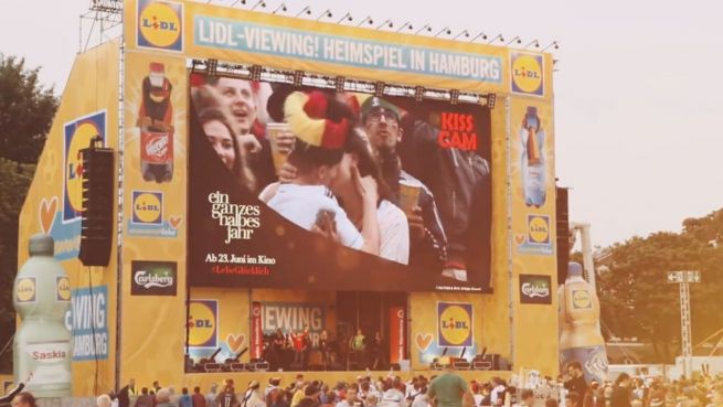 Mit einer netten Idee wird der Film 'Ein ganzes halbes Jahr' beworben. Beim Public Viewing in Hamburg sorgte eine 'Kiss Cam' dafür, dass gezeigte Paare sich küssten. Damit wurde nicht nur viel Liebe verbreitet, sondern zugleich die Aufmerksamkeit auf das Liebesdrama gelenkt.