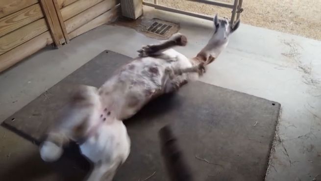 Luftige Wonne: Lama genießt Laubbläser-Behandlung