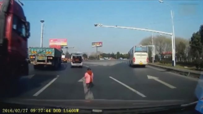 Ein Schrecken für alle Eltern: Mitten auf der Autobahn plumpst ein Kleinkind aus dem Kofferraum und tappst hilflos über die viel befahrene Straße. Der Vorfall ereignete sich vor wenigen Tagen in China.