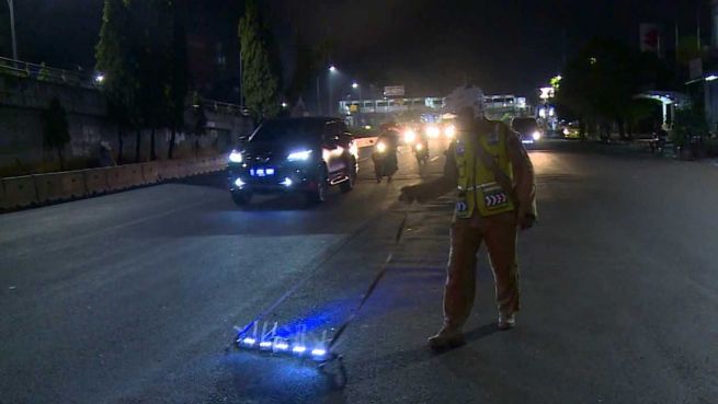 Nachts geht es auf indonesischen Straßen ganz schön spitz zu. Kleine KFZ-Werkstätten schmeißen Nägel auf die Straße, um Fahrzeuge zum Reifenwechsel zu nötigen. Eine Freiwilligen-Organisation hilft.