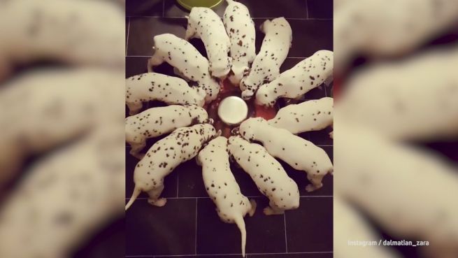 Dalmatinerdame Tiffany hat zwölf Welpen geboren. Der Nachwuchs ist ganz schön agil und hält seine Mutter ordentlich auf Trab.