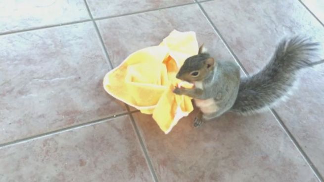 Ein quirliges Eichhörnchen aus dem 'Orphaned Wildlife Center' in New York hat seiner Betreuerin beim Putzen zugesehen und möchte kurzerhand beim Säubern behilflich sein. Doch so ganz möchte das einfach nicht gelingen.
