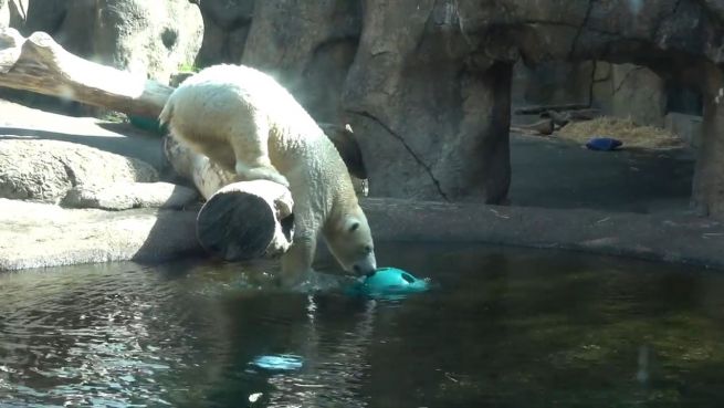 Wie macht man einen Eisbären glücklich? Bei Eisbärdame Nora aus dem Oregon Zoo ist dieses Frage leicht zu beantworten. Es reicht eine schwimmende Kugel.