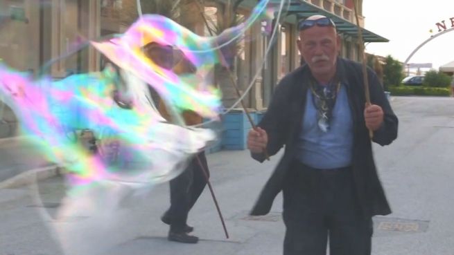 Der Russe Boris Egorov lebt in Italien auf der Straße. Unglücklich ist er deshalb nicht, im Gegenteil. Er verdient sich sein Geld mit riesigen Seifenblasen, die er unter anderem aus Bier zaubert.