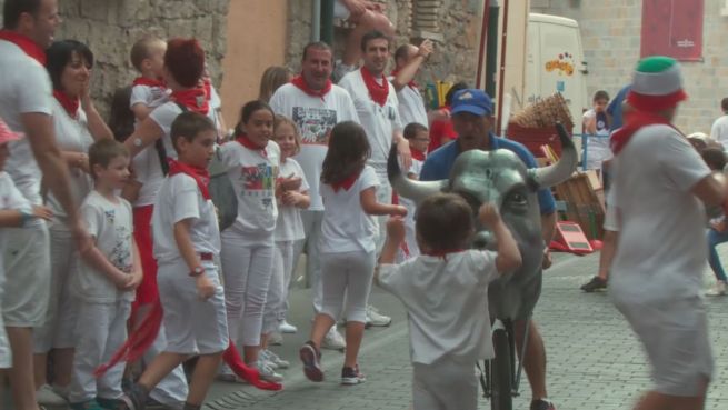 Pamplona feiert jährlich das berühmte Fermin-Festival. Während Tierschützer die Bullen-Hatz durch die spanische Stadt kritisieren, werden Kinder schon als Nachwuchs herangeführt.