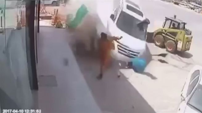 Perfektes Timing: Bauarbeiter entkommt krassem Crash
