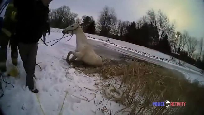 Ein zugefrorener See kann nicht nur für Menschen tückisch sein. Das musste ein Pferd aus Michigan, USA am eigenen Leib erfahren. Nur mit vereinten Kräften und großem Einsatz gelang es Polizisten und Feuerwehrleuten, eine Tragödie zu verhindern.