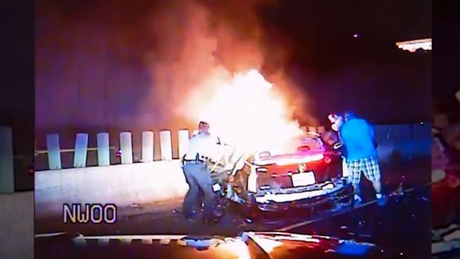 Mit klarem Kopf und schnellem Handeln haben zwei Polizisten aus Minneapolis Insassen aus einem brennendem Fahrzeug gerettet. Unterstützung bekamen sie hierbei von zwei Passanten. Trotz der tosenden Flammen blieben alle Beteiligten unverletzt.