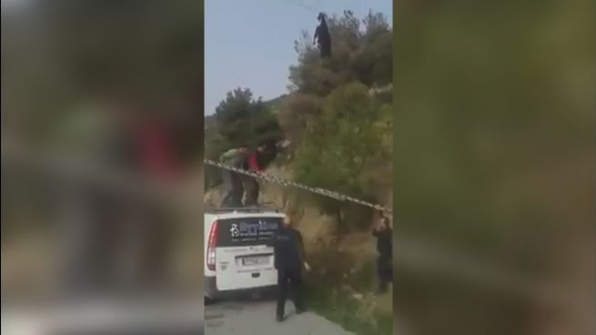 Rettungsaktion: Ziege hängt mit Hörnern in Oberleitung