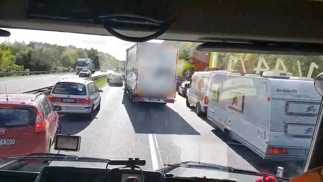 Rettungsgasse blockiert: LKW-Fahrer hört das Horn nicht