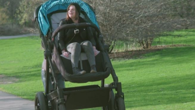 Riesen-Baby-Buggy-Test: Erwachsene im Kinderwagen
