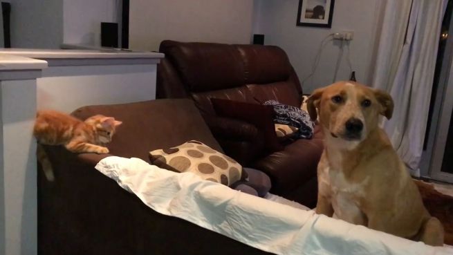 Seit Wochen hat sich Rocco auf Chester gefreut. Doch die junge Katze möchte partout nicht mit dem Hund spielen. Bis Rocco an einem Abend die rettende Idee kommt.