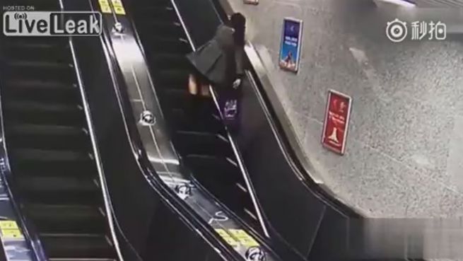 An diesem Tag hätte sich die junge Frau aus China sicherlich gewünscht, sie hätte ihre High Heels im Schrank gelassen. Denn diese werden ihr bei einer Rolltreppen-Fahrt zum Verhängnis.